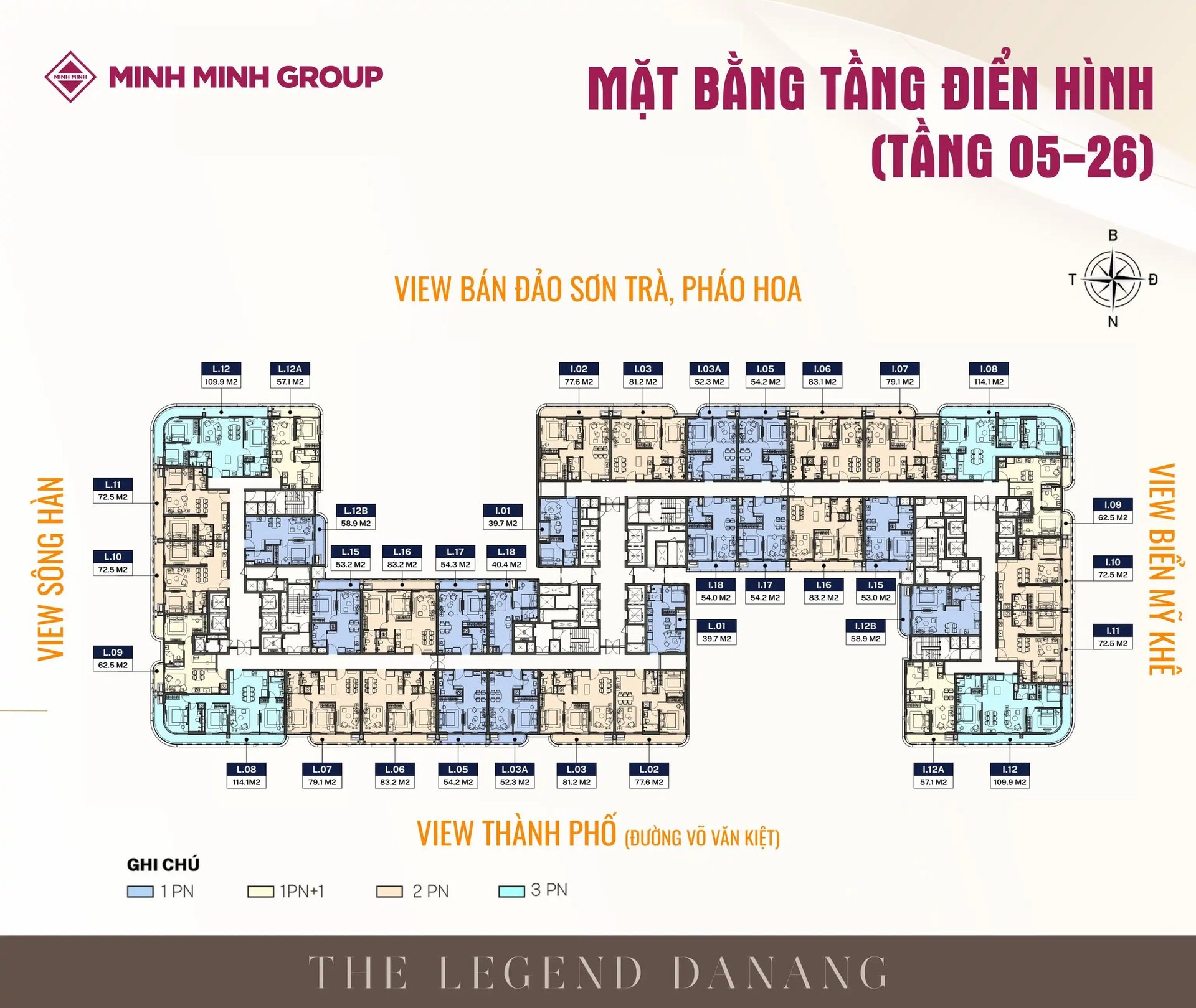 Dự án The Legend Đà Nẵng đầy đủ pháp lý và đang nhận đặt chỗ 100%. Thời gian nhận bàn giao căn hộ dự kiến trong vòng 2 năm: Quý IV/2027. Sổ hồng sở hữu lâu dài.