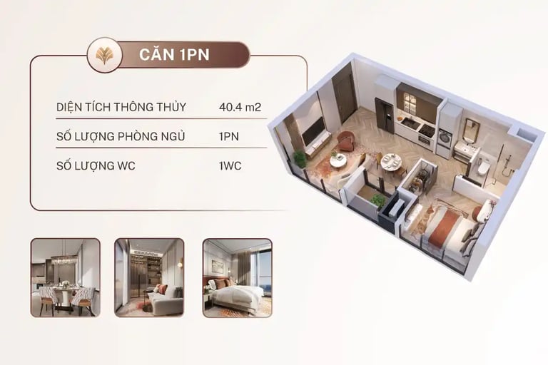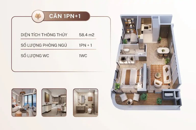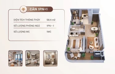 1BR: 308 căn | 39,7 - 58,9 m2 | 1BR +: 88 căn | 57,1 - 62,5 m2